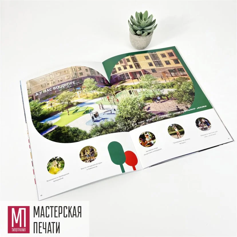 Изготовить каталоги для ЖК "Семейный квартал" высочайшего уровня — с безупречной цветопередачей, премиальными материалами и сложной постпечатной отделкой. До обращения к нам заказчик уже пробовал печатать в столичных типографиях, но результат не прошёл строгий внутренний контроль.